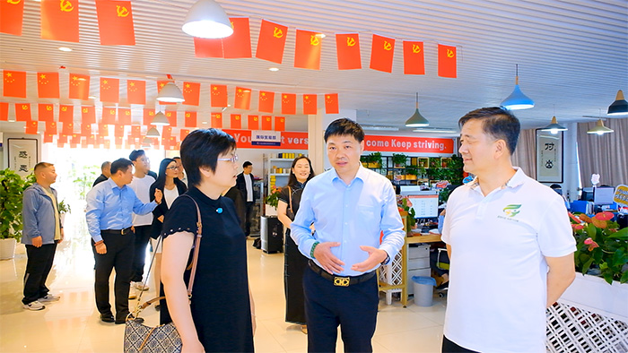 7月20日下午,九三學(xué)社河南省委常委、省生態(tài)環(huán)境廳委員會主委郜國玉,九三學(xué)社河南省科技廳委員會主委劉三軍,九三學(xué)社省生態(tài)環(huán)境廳委員會副主委、東區(qū)支社主委劉萍,九三學(xué)社河南省科技廳委員會副主委、五支社主委孟彩虹等一行蒞臨河南榮盛科技集團調(diào)研指導(dǎo)工作。河南榮盛科技集團董事長楚科奇陪同調(diào)研。