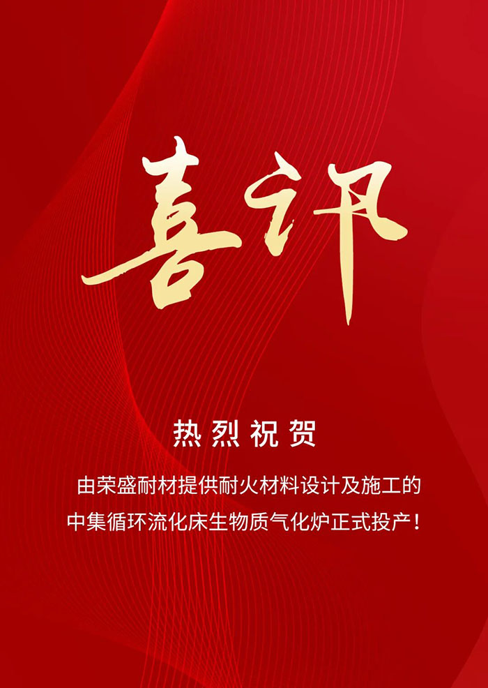 喜訊!由榮盛耐材提供耐火材料設計及施工的中集循環流化床生物質氣化爐正式投產!